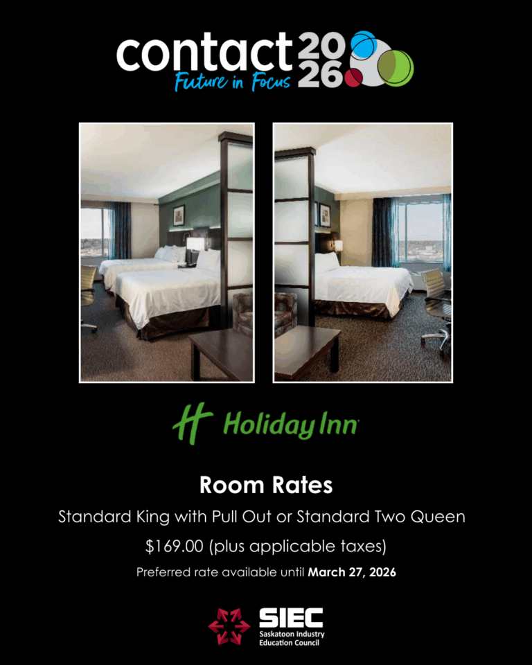 Call the hotel directly at 306-986-5000 and ask for the “SIEC Delegate” group block, or book online by using the link below